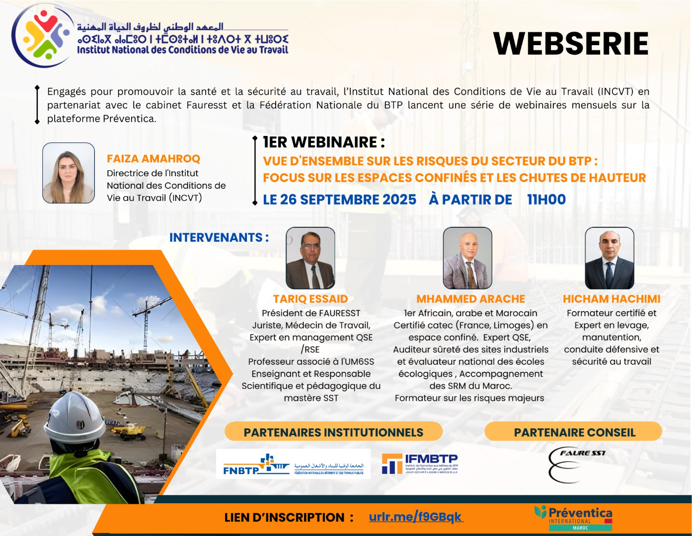 septembre 23, 2025 Webinaires Webinaire sur la sécurité dans les chantiers Lancement d’une série de webinaires mensuels sur la sécurité dans le secteur BTP En partenariat avec Lire la suite